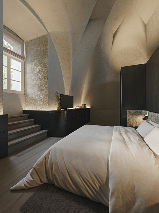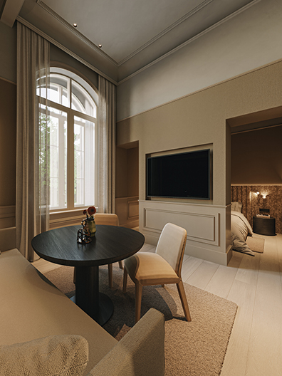 A warm material palette of natural tones is chosen to create an atmosphere in which guests will feel at ease. Oversized lounge seating will be used to provide a subtle connection with the outdoors, overlooking the castle gardens, while retaining a feeling of intimacy and comfort. The hotel’s identity will be reinforced through design touches, as well as refined detailing, styling and art.