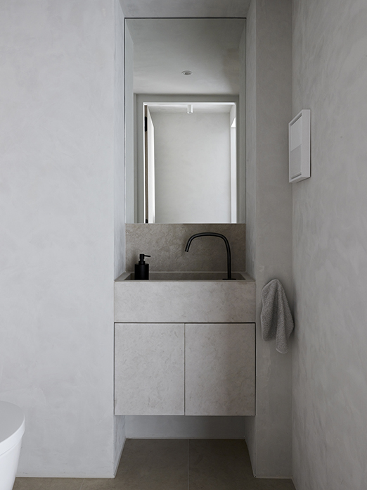 This bathroom was designed as a serene, Feng shui-inspired retreat in the vibrant heart of Amsterdam. A subdued palette and natural materials create a sense of balance and tranquility, radiating openness and calm.