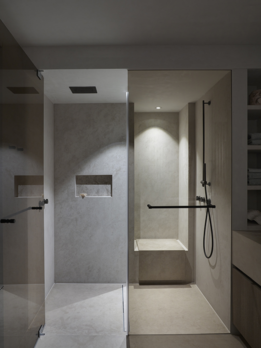 Soft tones enhance the coherence of the space and give it a timeless character. COCOON taps, basin, and showerset are seamlessly integrated, adding refinement and a contemporary touch. The result is a bathroom where relaxation and balance take center stage.